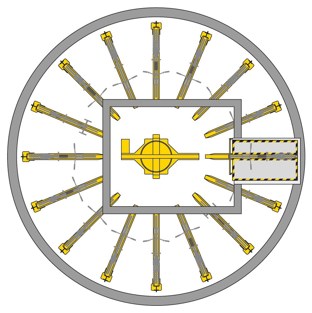In the centre of the newly created Aaron-Bernstein-Platz stands a mirrored , which initially catches the eye but then makes its presence felt among the trees and - like Norman Foster's mirrored roof at the Old Port of Marseille - arouses curiosity. The round building is a Bikesafe, a fully automatic bicycle station of particular elegance. It offers space for 96 bicycles, which are stored securely and weatherproof under the square. The transfer area with the entrance gate on the square is operated by chip or QR code. After opening, the front wheel is placed on a rail and the bike is pulled into the gate. The gate closes again automatically and the parking process is completed after approx. 20 seconds. The new ‘Am Tacheles’ neighbourhood has another small highlight in the form of the glittering sunlight.