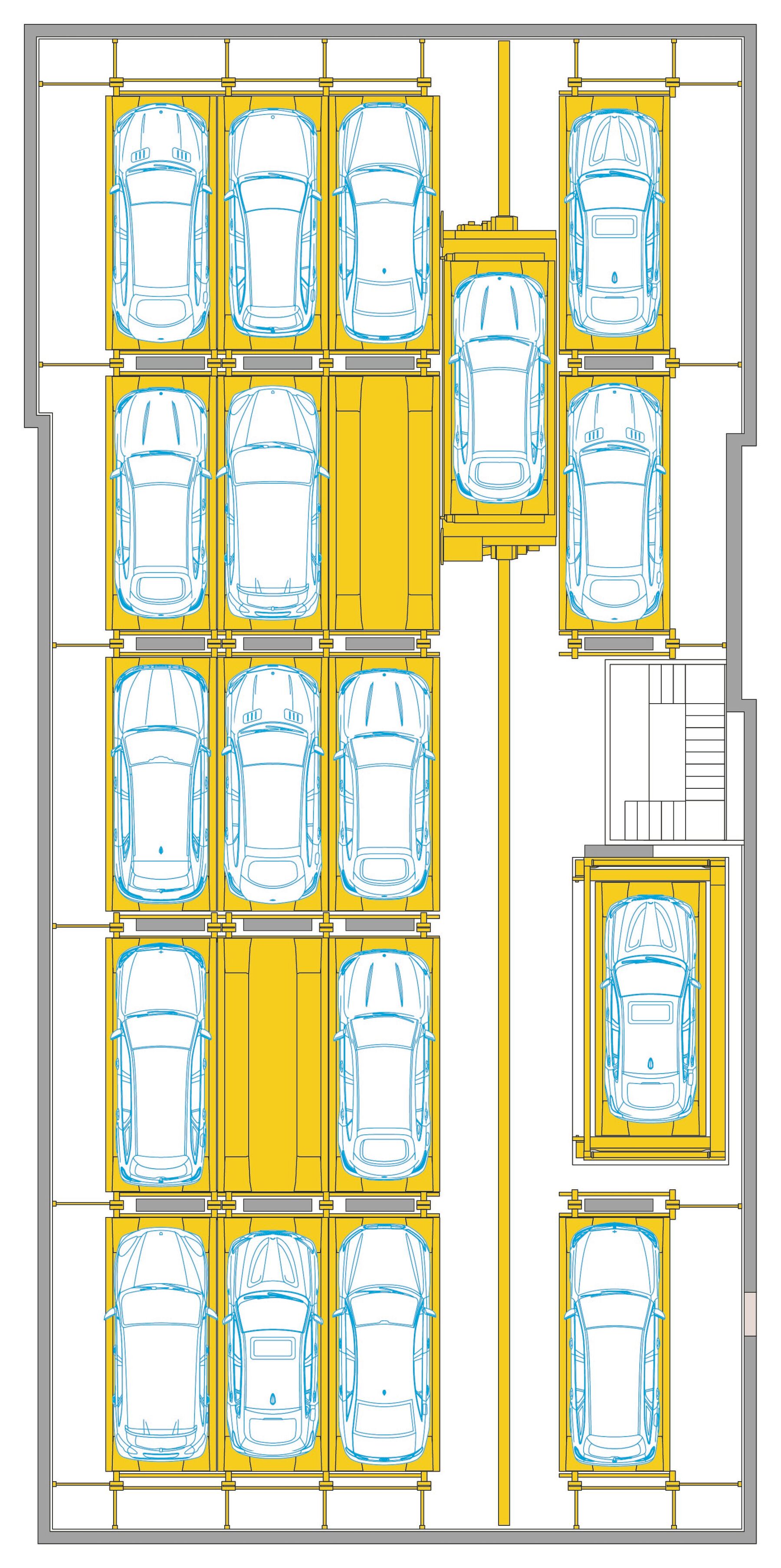 In the center of Madrid, a fully automatic WÖHR Multiparker 740 contributes to the reduced ecological footprint of the Montalbán 11 building.